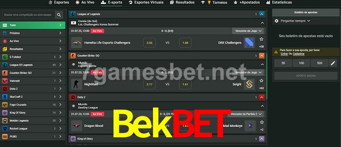 O Bekbet oferece uma grande seleção de opções de apostas em e-sports com probabilidades competitivas